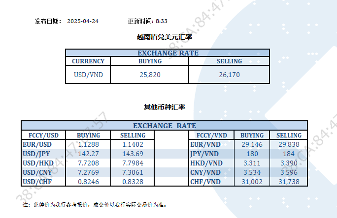今日汇率 2025-04-24