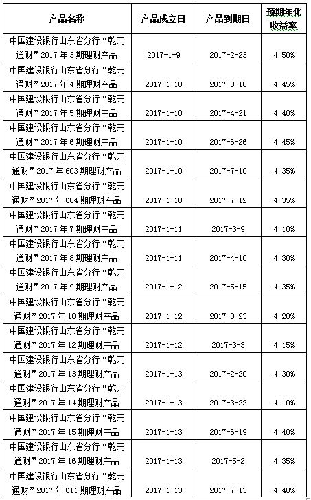 中国建设银行山东省分行“乾元通财”产品成立公告